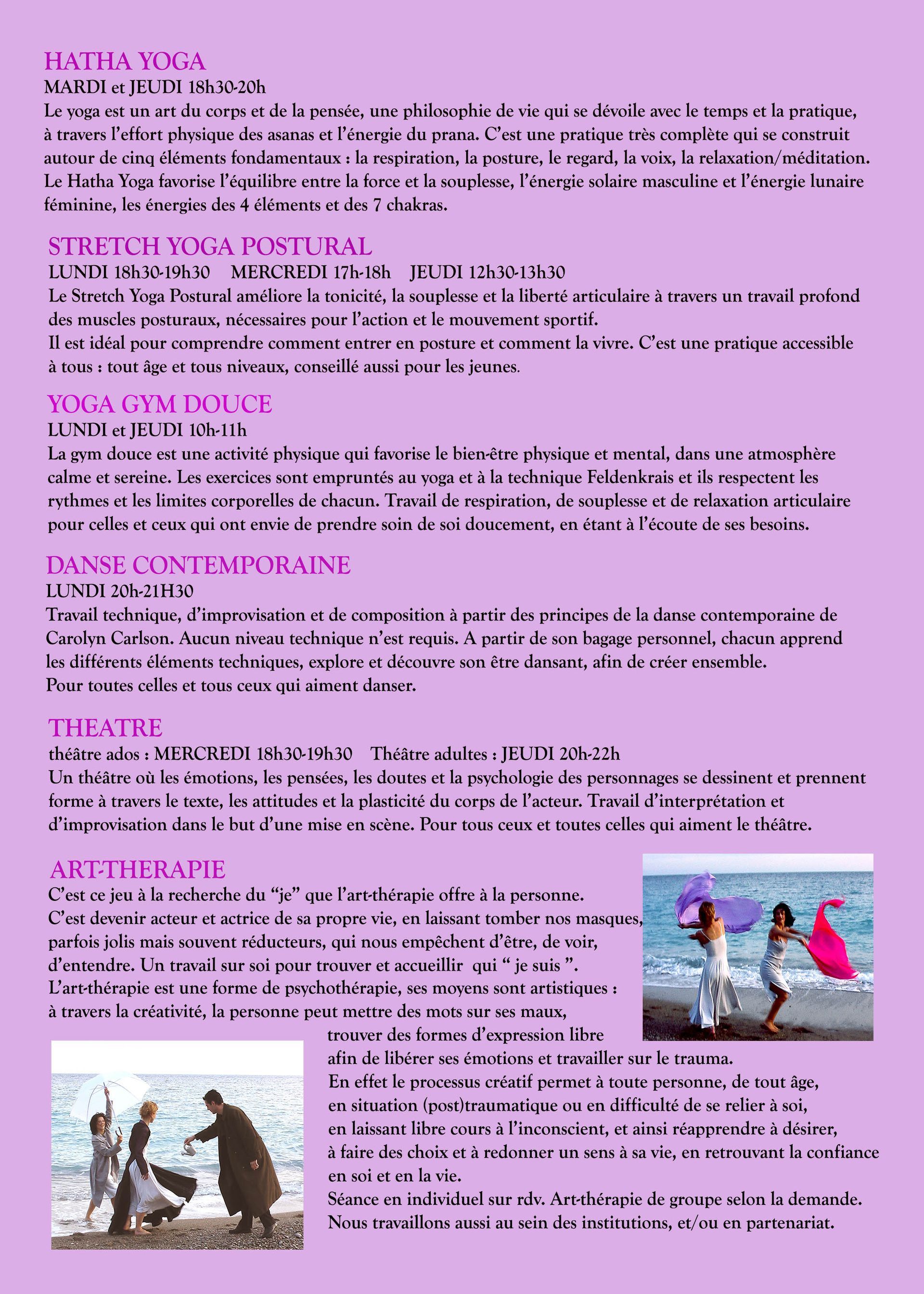 art-thérapeutes, artistes mimes, yogini et chorégraphe, metteur en scène